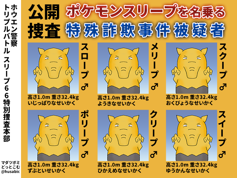 相手がよちむ対策でNNを全部同じ「ねむりません」に変えてきた。よちむは相手3体のうち誰を対象に取るかがランダムなので、どの技を覚えたスリープがどこに出るかが分からなくなり爆笑してた。